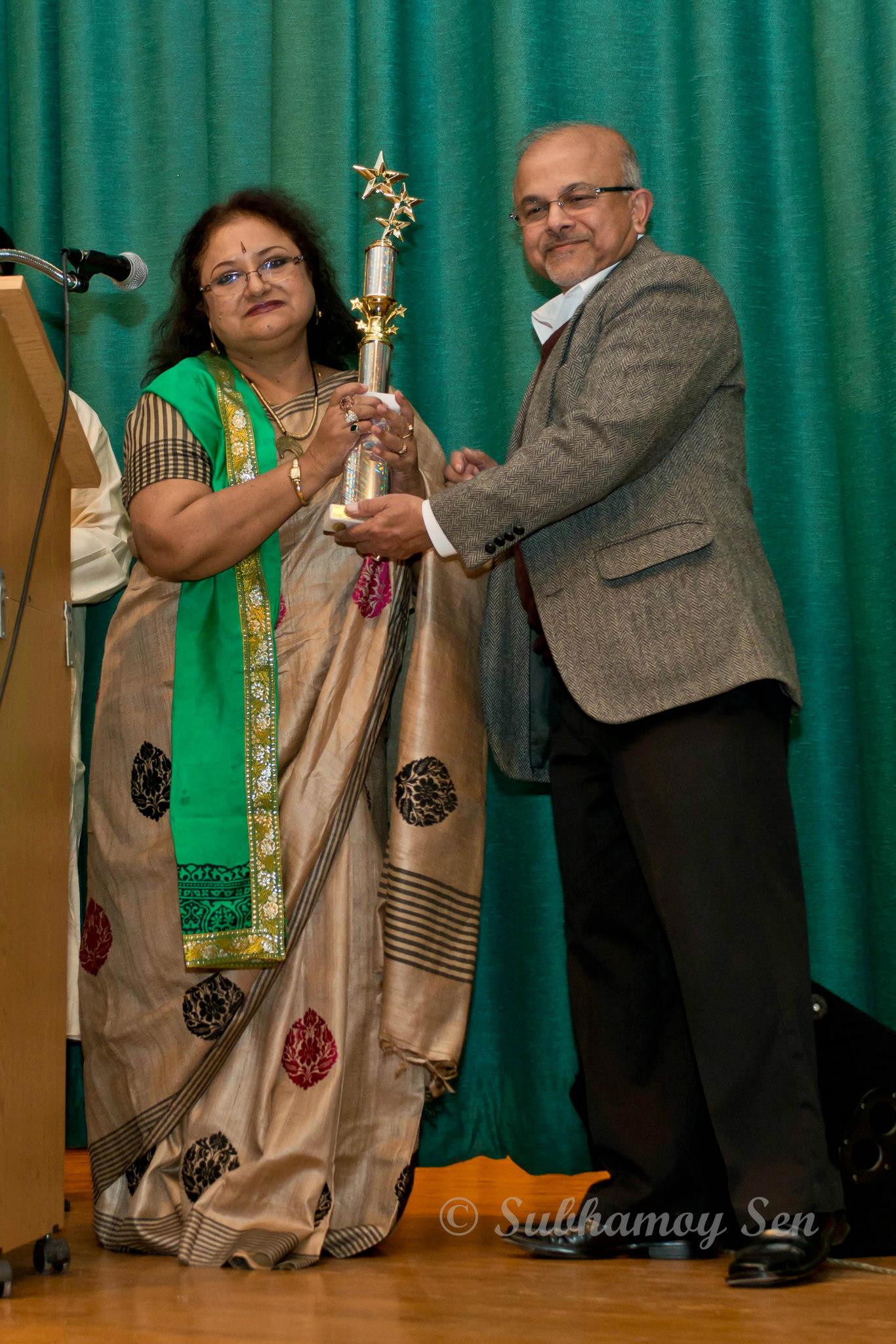 Sharmila P. Ghoshal receiving trophy award [Photo Credit: Subhamoy Sen]